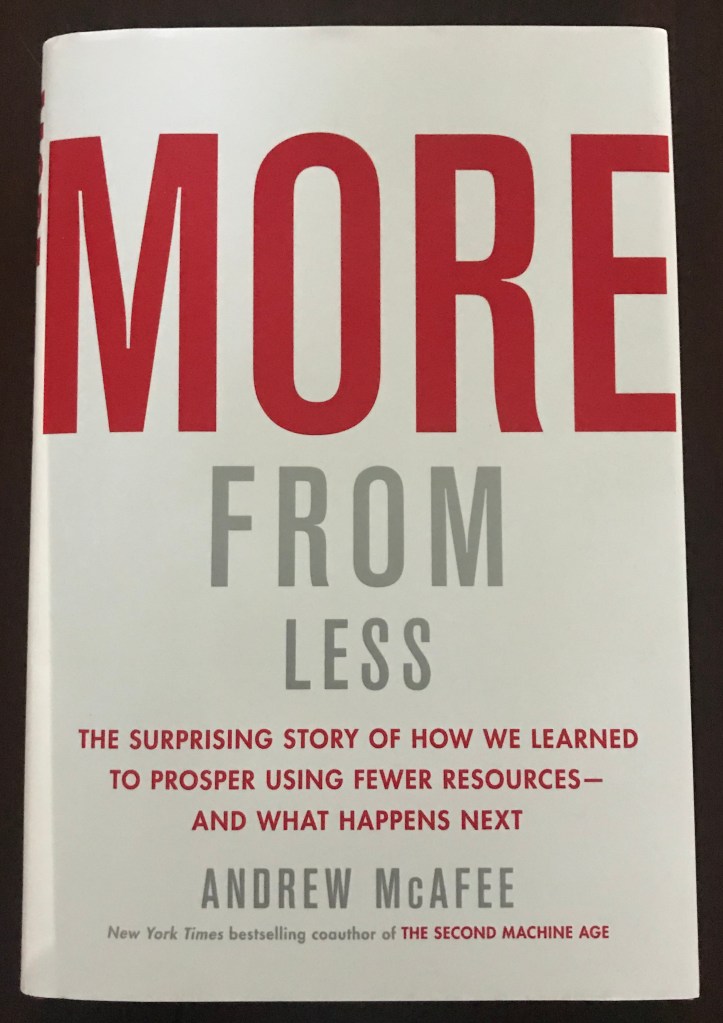 Still dematerialization is happening. Whether it is happening fast enough or widely enough may be open for debate, but More From Less is an important book worth reading. McAfee’s passion for the subject comes through in his engaging, well-paced writing.